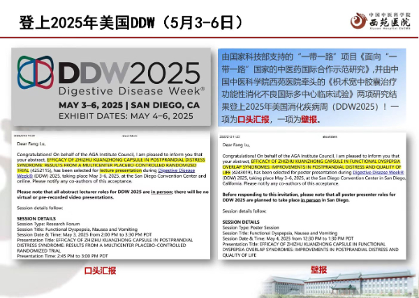 另据了解,2024年11月,在印度尼西亚巴厘岛举行的亚太消化病周上,由亚太消化协会和亚洲神经胃肠与动力学会共同制定的最新版《功能性消化不良-亚洲共识》中,枳术宽中胶囊因其科学、严谨、高级别的循证医学证据而被纳入其中。此次,枳术宽中胶囊亮相美国DDW,传播中医药文化,推动中医药与现代医学融合发展,为中医药走向世界贡献力量。