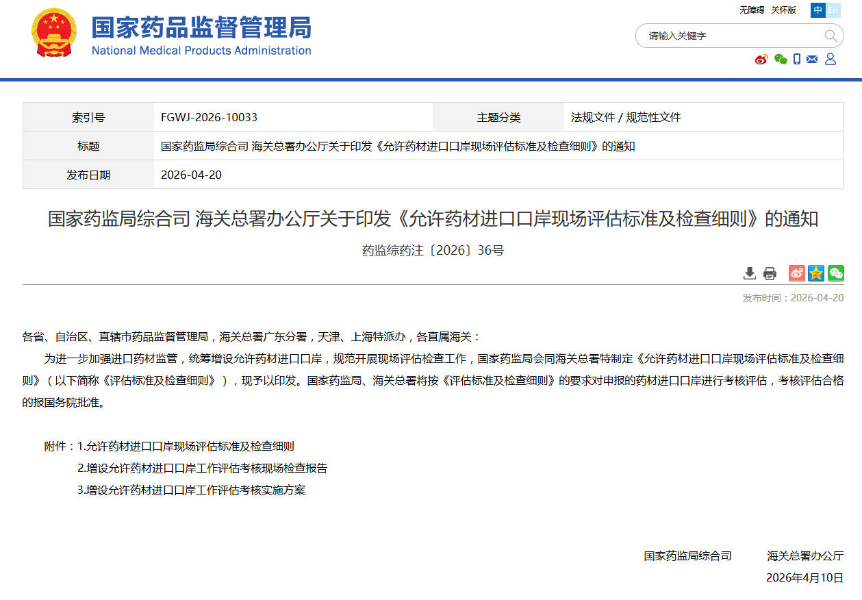 促进中药材通关便利化!《允许药材进口口岸现场评估标准及检查细则》印发