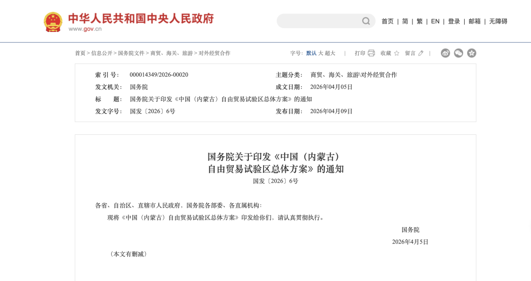 建设好国家中医药服务出口基地!国务院印发《中国(内蒙古)自由贸易试验区总体方案》