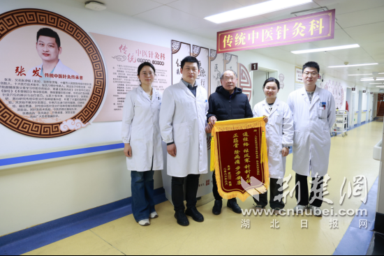 “通经络,祛风寒,针针见效;正筋骨,除病痛,步步安康。”近日,50多岁的贺先生专程从十堰市丹江口市凉水河镇赶到十堰市人民医院传统中医针灸科,将一面饱含深情的锦旗送到张发医生及其团队手中,感谢他们用短短的几次针灸与特色中药火罐的调理,让困扰他十几年的顽固腰痛迎来了根本性好转。