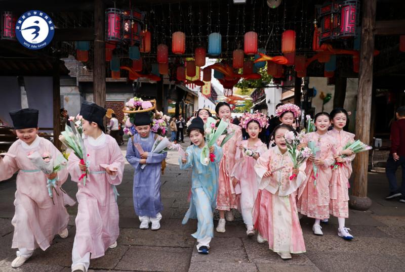 3月28日下午,杭州桥西历史文化街区的青石板路上人头攒动。身着唐宋服饰的小学生们化身“桃花仙子”与“陶渊明”,手持竹简吟诵古诗;隔壁中药茶饮体验区内,“小小中药师”们正熟练地为路人冲泡枸杞菊花茶,讲解药材功效。这场名为“药在蓬莱”的联合策展活动,以沉浸式体验打破传统与现代的边界,成为杭州市卖鱼桥小学文润校区传统文化教育的创新实践样本。