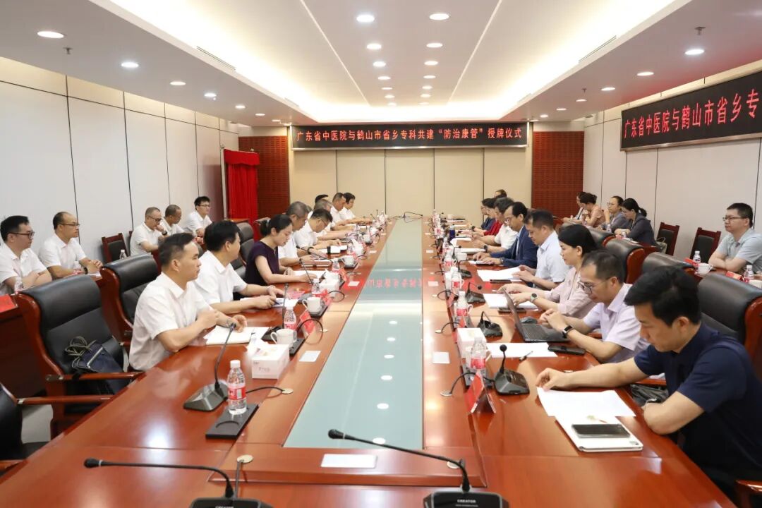 4月15日,广东省中医院与鹤山市开展省乡专科共建“防治康管”授牌仪式在鹤山市人民政府举行,共同启动创伤、胸痛、卒中、中医特色疗法四大中心共建,开展专科授牌,标志着双方合作从“点对点”帮扶迈向“体系化”共建新阶段,同时以“防-治-康-管”为核心的省、县、镇、村四级中医药服务体系正式启动。