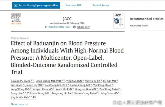 八段锦作为一项温和的传统运动,备受中老年人偏爱,而它的健康价值也再获科学验证。2月18日,中国医学科学院阜外医院李静团队发表在《美国心脏病学会杂志》上的一项研究显示,正常高值血压人群(高于120/80毫米汞柱但低于140/90毫米汞柱)练习3个月八段锦,就能有效降低收缩压,且效果能持续1年,与快走运动相当。