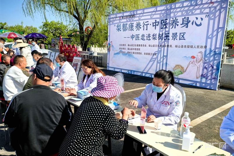 春染梨乡,药香随行。为推动中医药康养与文旅产业深度融合,丰富第31届砀山梨花节服务内涵,日前,安徽省砀山县“梨都康养行?中医养身心”主题义诊活动在良梨镇梨树王景区举行,将中医药文化、特色康养服务与梨花文旅体验完美交融,以“文旅+康养”新业态,让游客和村民赏景之余,享受到优质贴心的中医健康服务。