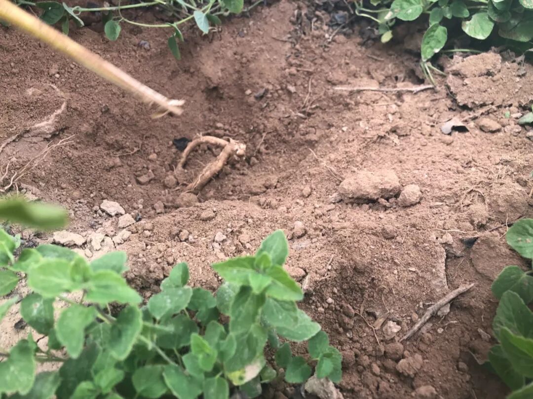 △党参在地里看起来就像红薯一样,当地人会打壮根灵,使其看起来更粗。谭卓曌摄
