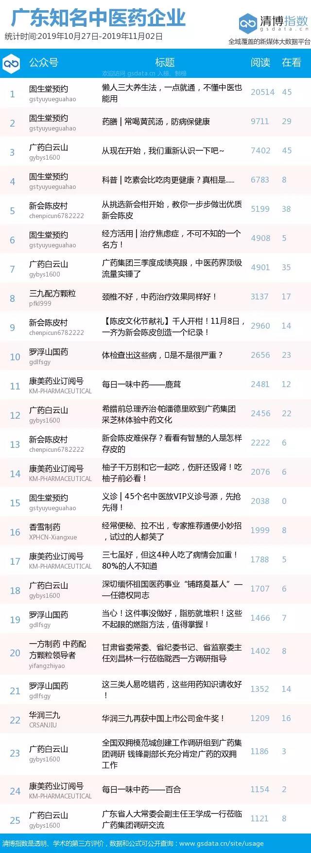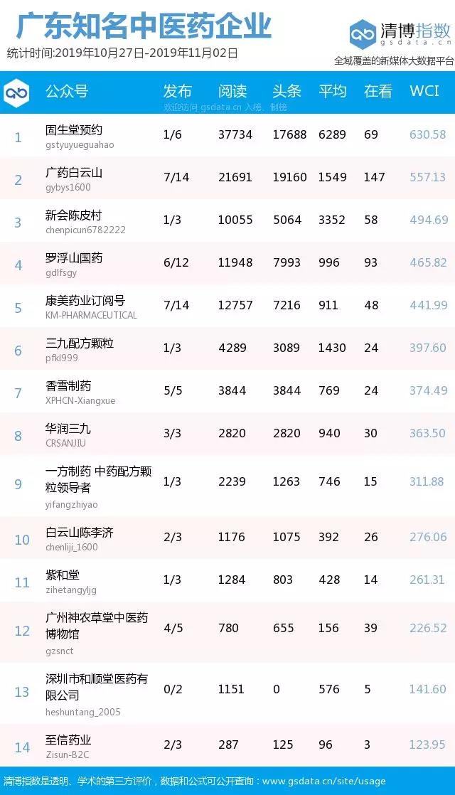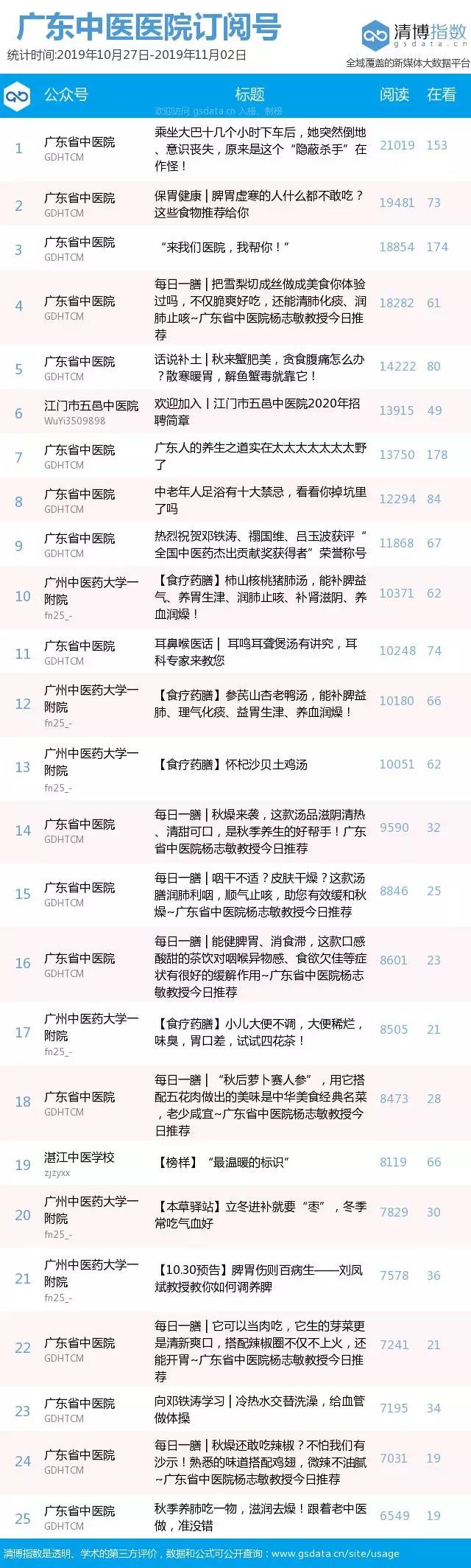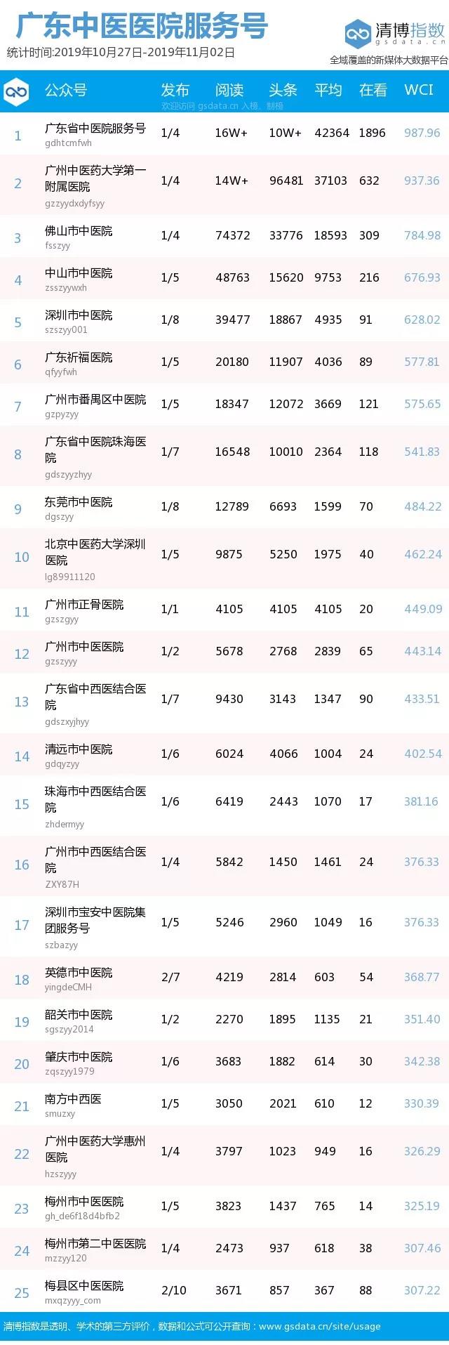 广东省第二中医院、佛中医、湛江中医学校、养生深圳、翁源县中医院、广东祈福医院健康号、深圳市中医院订阅号位列前十。