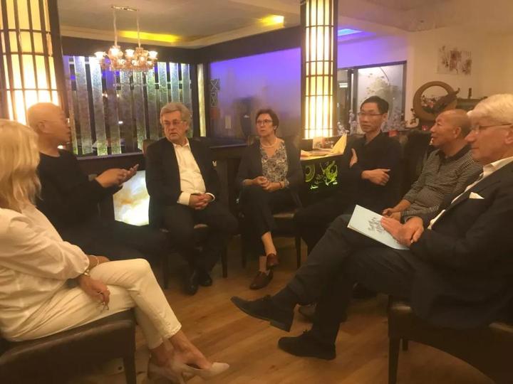 图为中医团专家与德国法兰克福知名主治医生汉倪斯教授等业内人士进行深入交流