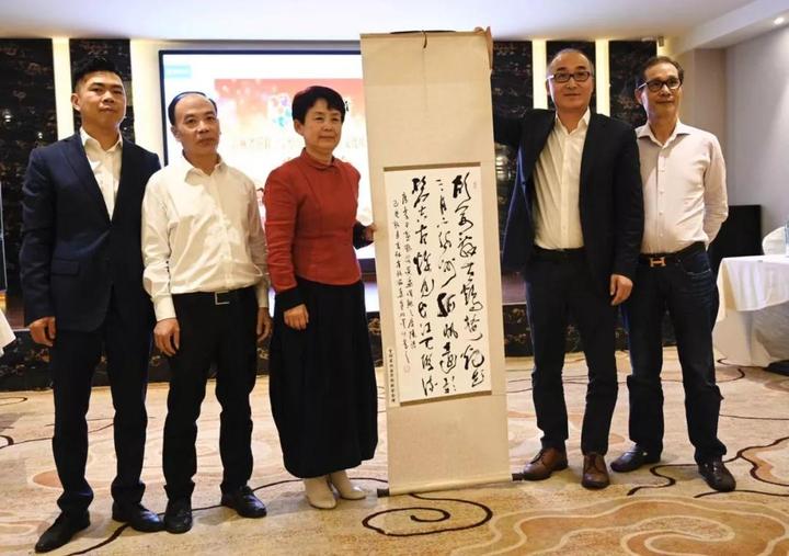 图为李静副主席向米兰浙江华侨华人联谊会赠送书画作品