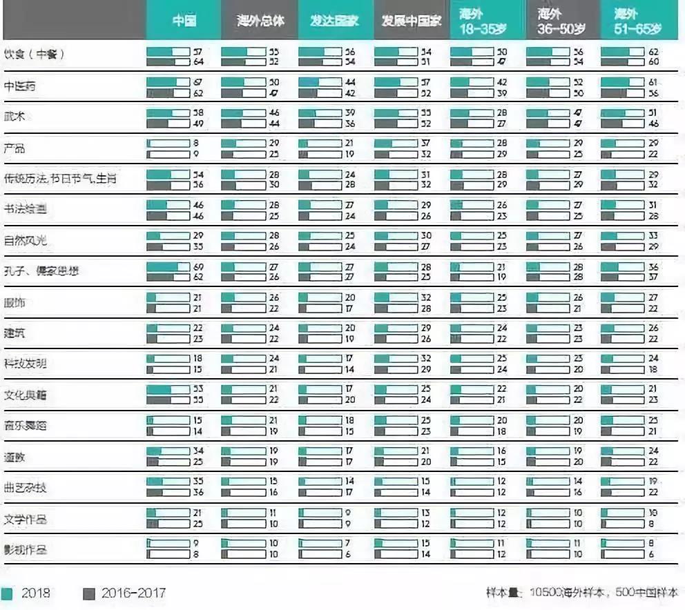 报告显示,50%海外受访者认为“中医药”是中国文化的代表元素,占比位居第二,第一为中餐(55%),第三是武术(46%)。有67%的中国受访者认为中医药是中华文化的代表元素,超过了选择中餐的人数。