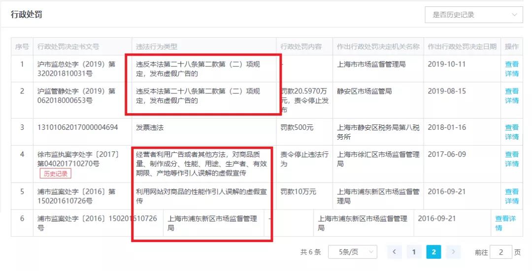 天眼查显示,就在今年,欧莱雅已经两次因为虚假宣传被处罚。今年10月,上海市市场监督管理局发布沪市监总处字(2019)第320201810031号决定书,直指欧莱雅违反《广告法》第二十八条第二款第(二)项规定,发布虚假广告。今年8月,上海市静安区市场监管局发布沪监管静处字(2019)第062018000653号决定书,指出欧莱雅方面违反《广告法》第二十八条第二款第(二)项规定,发布虚假广告,对其处以罚款20.597万元,并责令停止发布。