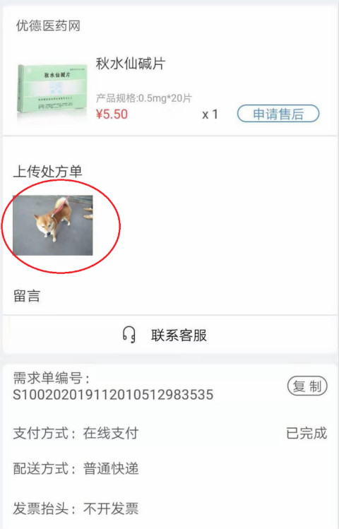 宠物照片充当处方通过审核。优德医药网截图