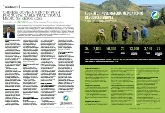 上世纪60、70、80年代,分别开展3次全国范围的中药资源普查。随着世界各地对中医药医疗保健服务需求的不断增加及中医药相关产业蓬勃发展,中药资源的需求量也不断增加,中药资源状况发生了巨大变化。2011-2020年,国家中医药管理局组织开展了第四次全国中药资源普查,对全国31个省近2800个县开展中药资源调查,获取了200多万条调查记录,汇总了1.3万多种中药资源的种类和分布等信息,其中有上千种为中国特有种。发现新物种79种,其中60%以上的物种具有潜在的药用价值。组建了5万余人的中药资源调查队伍;构建了由1个中心平台,28个省级中药原料质量监测技术服务中心和66个县级监测站组成的中药资源动态监测体系,开展重点中药材品种的价格、流通量和种植面积等信息服务,实时掌握中药材的产量、流通量、价格和质量等信息;建设了28个中药材种子种苗繁育基地和2个中药材种质资源库,形成了中药资源保护和可持续利用的长效机制。2020年1月2日,《Nature》发表专题报道,详细介绍了在中国政府领导下的第四次全国中药资源普查取得的重要成果及其对促进中药资源可持续利用和国民经济发展的重要贡献。