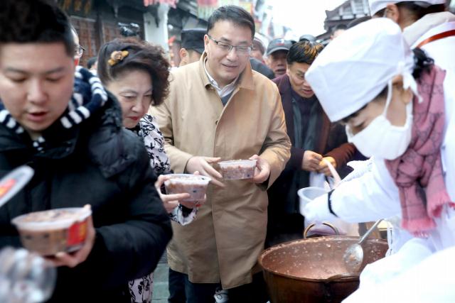 浙江杭州河坊街多家中医堂为市民、游客施腊八粥