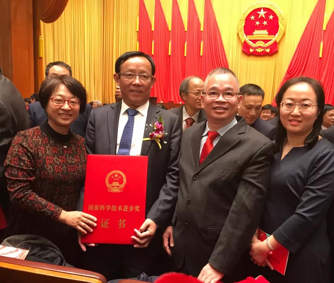 ▲许能贵与团队成员在2019年度国家科学技术奖励大会现场