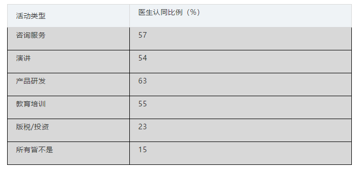 哪些类型的活动医生应该接受行业的报酬?(见下表)