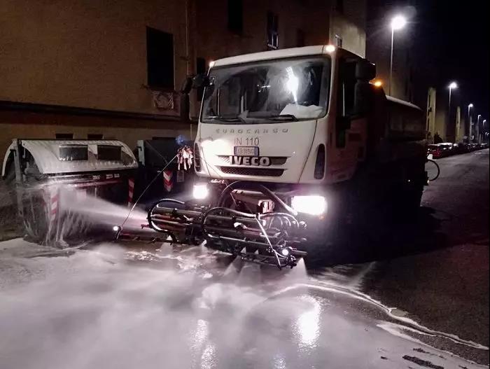 罗马市政部门正在对市内的垃圾箱进行消毒工作。仅昨日(19日)夜间就对市内3500个大型垃圾箱喷洒了消毒药物。图片来源:罗马市长拉吉推特