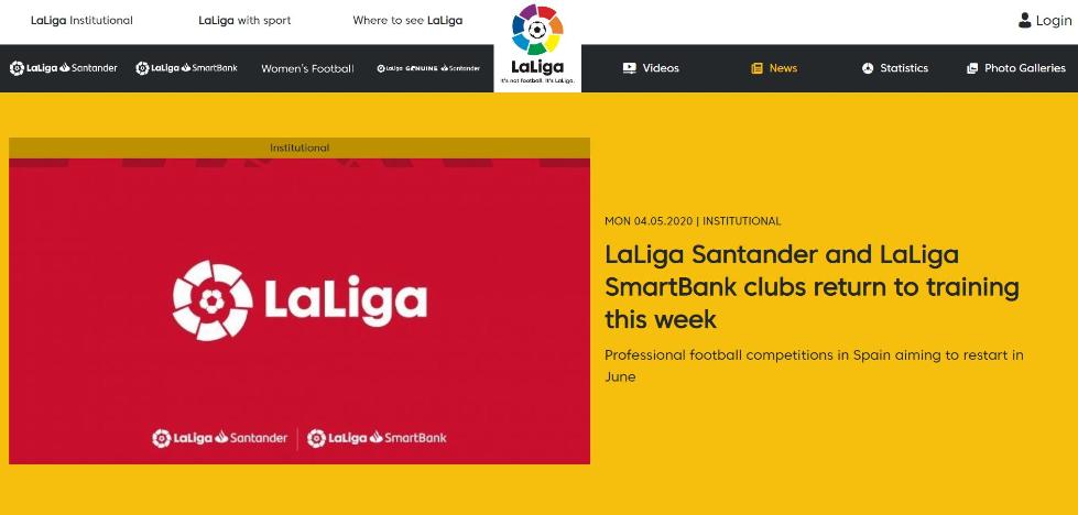 中新网5月5日电 据西甲联赛官网消息,在获得卫生部批准后,西甲各俱乐部将在本周恢复训练,目标是在6月恢复联赛,并在今夏完成本赛季。