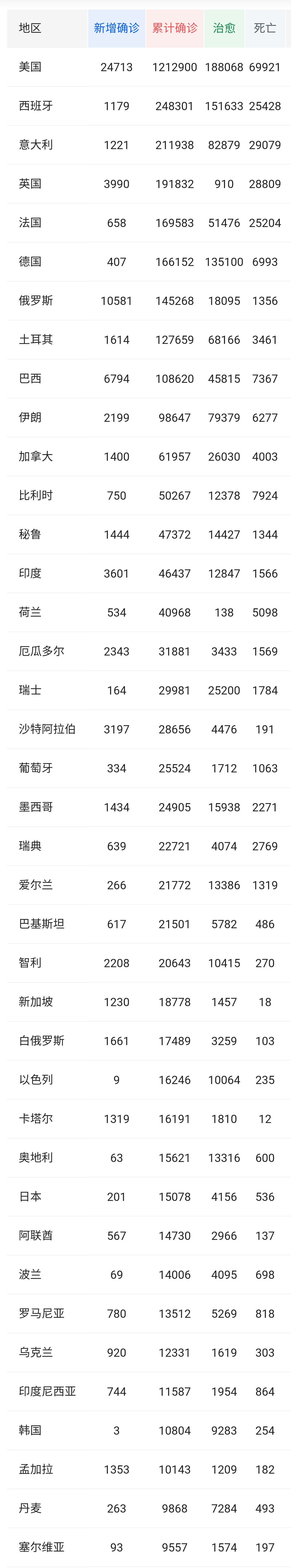 据塞尔维亚卫生部5月4日15:00分公布数据,5月3日15:00以后对4550个疑似病例进行了检测,93份报告呈阳性,累计确诊9557例,新增死亡4人,共死亡197人,死亡率2.06%,共治愈1574人,当前住院人数2023人,重症患者53人,截止到目前共检测106461人。