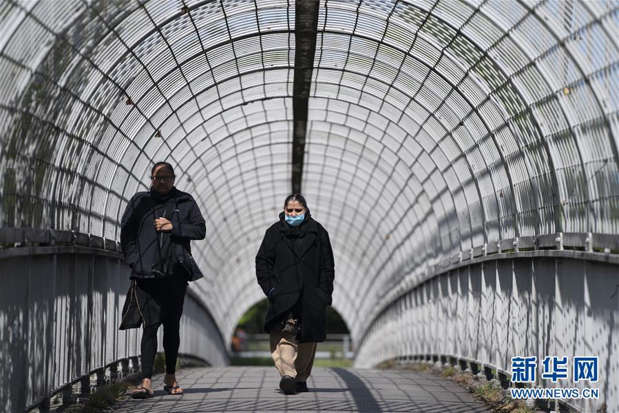 5月5日,行人走在英国曼彻斯特的过街天桥上。
