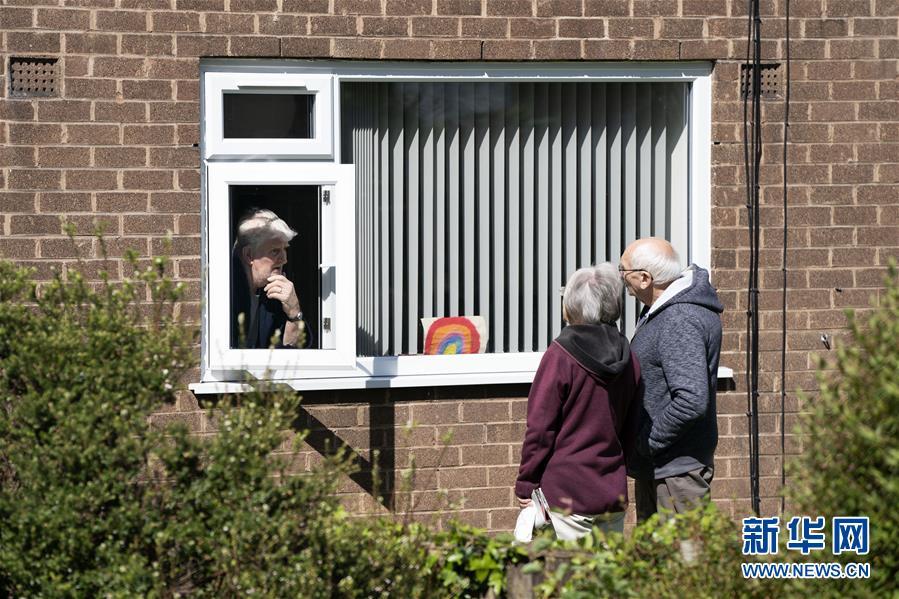 5月5日,在英国曼彻斯特,人们保持社交距离交谈。