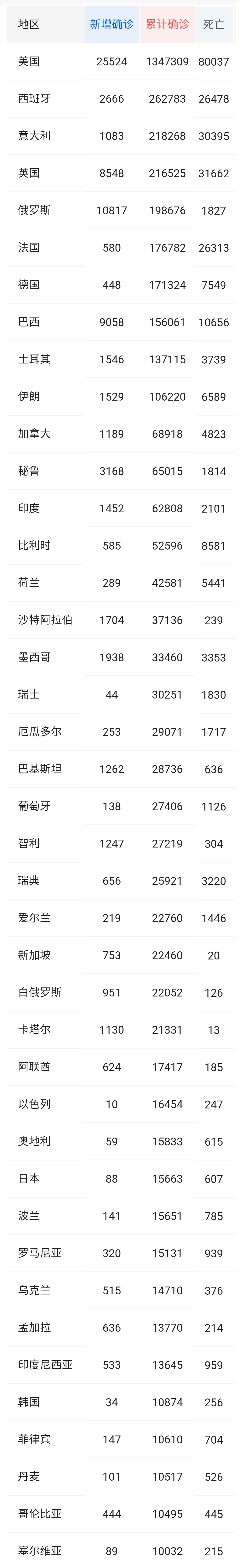 其中,美国新冠肺炎确诊病例累计超过130万例,为1305199例;死亡病例为78469例。在越来越频繁的“重启”声中,美国各州采取了不同的节奏恢复经济。然而美国卫生专家称,没有一个州符合重启经济条件,恐将引发第二波疫情。