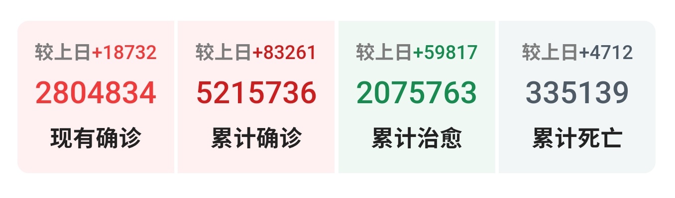 数据显示,截至美国东部时间22日19时32分(北京时间23日7时32分),美国累计确诊病例达1600481例,累计死亡病例达95921例。