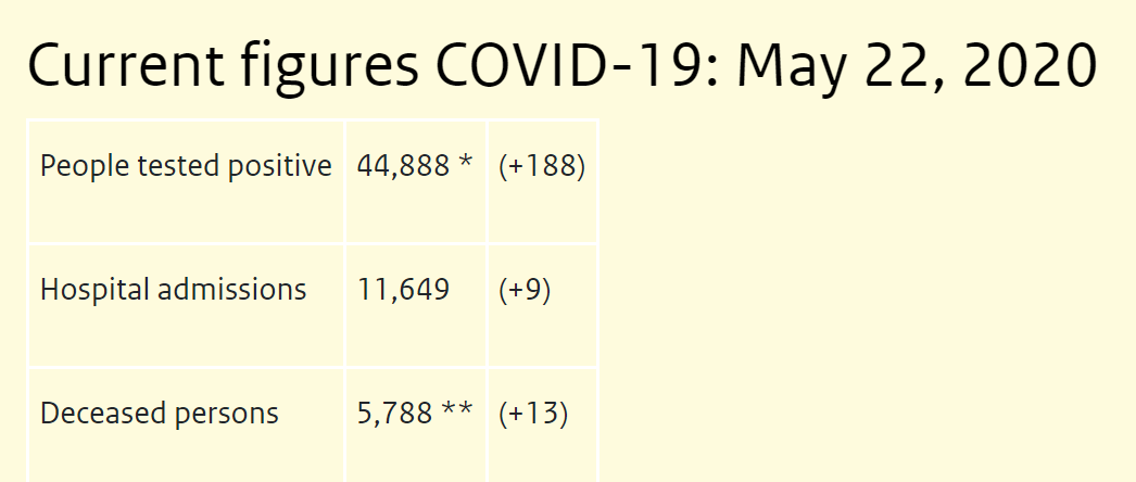 荷兰卫生部门RIVM公布最新数据,荷兰新增感染人数188,13例死亡,目前荷兰累计确诊达到44888人,死亡5788人。