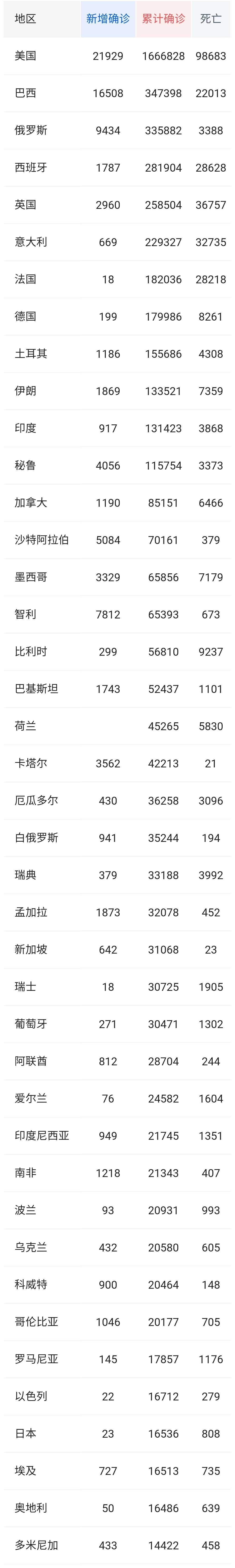 CNN称,这使得巴西超越俄罗斯,成为全世界仅次于美国的新冠肺炎患者确诊数第二多的国家。俄罗斯目前有335882例确诊病例。