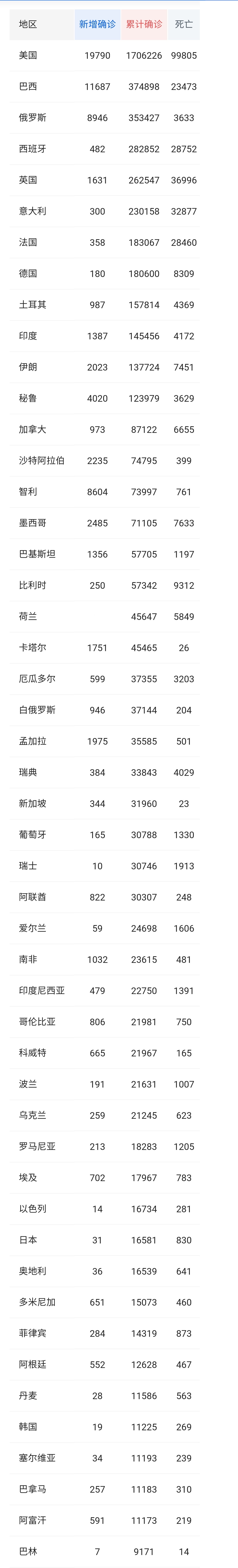 当地时间25日,阿根廷卫生部公布该国新增新冠肺炎确诊病例552例,累计达12628例;新增死亡病例15例,累计达467例。首都地区的新增确诊病例为375例,占全国新增病例的近68%。