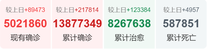 据美国约翰斯·霍普金斯大学统计数据显示,截至美东时间7月16日17时33分(北京时间17日5时33分),美国新冠肺炎确诊病例已达到3549451例,死亡病例达到138072例。