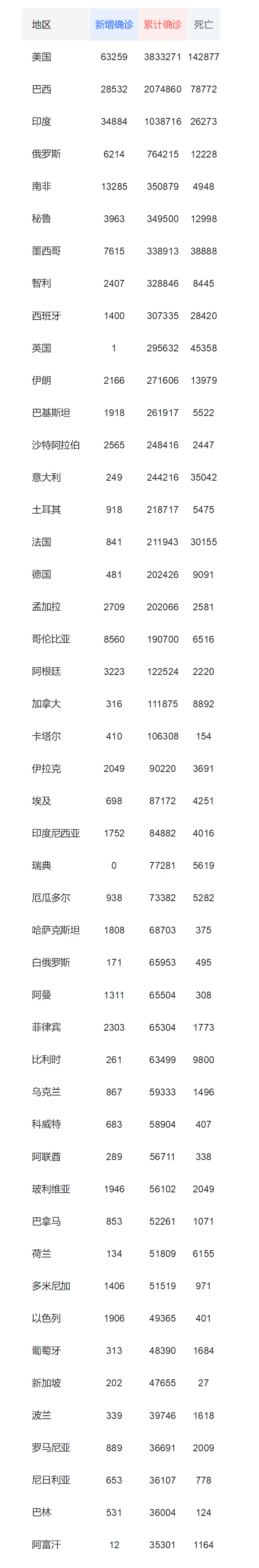 (本表数据来自腾讯网由多方来源总结。由于各国数据来源多样也存在时差等因素,若有数据错误,敬请谅解)