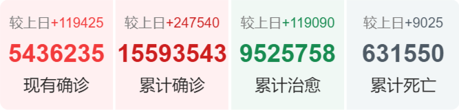 美国约翰斯·霍普金斯大学发布的新冠肺炎疫情统计数据显示,截至美国东部时间23日下午5点35分,也就是北京时间今天凌晨5点35分,美国累计新冠肺炎确诊病例数突破402万,增至4026288例, 死亡病例增至144032例。美国现在是全球累计确诊病例和死亡病例最多的国家。