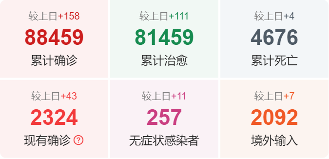 新增病例中,境外输入性病例为20例,其中14例在入境检疫过程中确诊,6例在入境后隔离期内确诊。社区感染病例仅为3例,这是时隔87天的最低水平,分别为首尔市2例、京畿道1例。