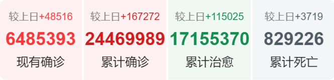| 国家/地区 | 确诊总数 | 新增确诊 | 死亡总数 |