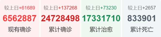 | 国家/地区 | 确诊总数 | 新增确诊 | 死亡总数 |