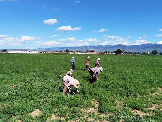 “现在种中药的人特别多,我们趁着农闲过来做清清杂草的活儿,一个月也能挣上个一两千,家里还有几亩地流转给了企业,一年到头还有租金赚,以前哪想到能过上这种好日子!”正值炎夏午后,农民樊大姐在正和堂药材有限公司的黄芪种植基地里仍干劲十足。
