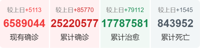 据新华社北京8月30日电 世界卫生组织:截至欧洲中部时间29日15时44分(北京时间29日21时44分),全球确诊病例较前一日增加287138例,达到24587513例;死亡病例增加5824例,达到833556例。