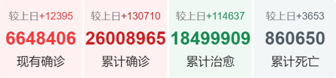 | 国家/地区 | 确诊总数 | 新增确诊 | 死亡总数 |
