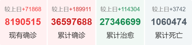 | 印度 | 6,903,812 | 70,824 | 106,521 |