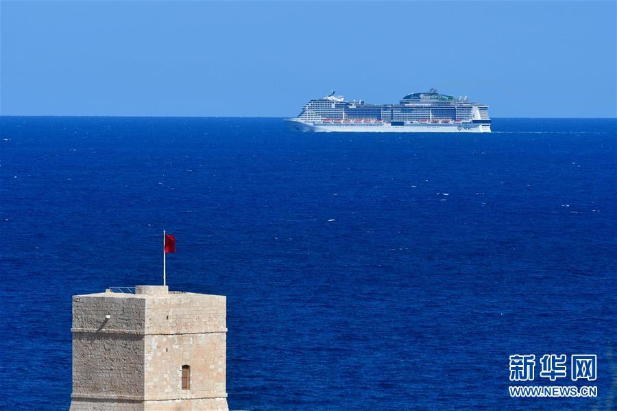 10月16日,一艘邮轮抵达马耳他瓦莱塔港,但因邮轮上出现新冠疑似病例,乘客未被允许上岸后驶离。 新华社发(乔纳森·博格 摄)