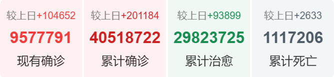 | 国家/地区 | 确诊总数 | 新增确诊 | 死亡总数 |