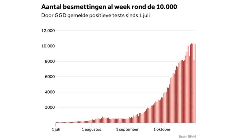 今天,RIVM报告了新增10280例电检测为阳性的病例,其中包括昨天数量不明的病例,这些病例由于电脑问题而未纳入昨天的数字。过去两天的平均感染数量每天超过9000,已经比本周早些时候有所下降。从今天新发布的RIVM数字可以明显看出。