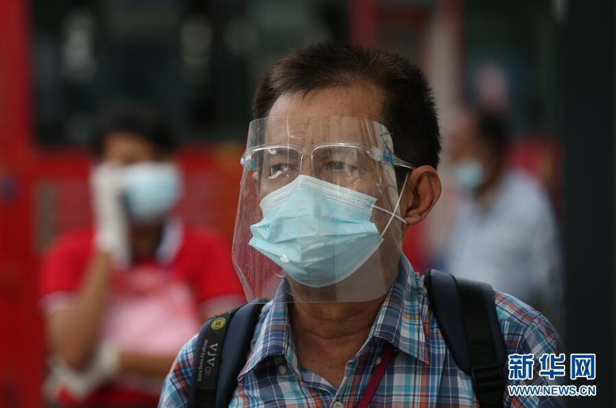 10月29日,一名戴着口罩和面罩的男子在缅甸仰光的公交车站等公交。 缅甸卫生和体育部29日晚发布的数据显示,过去24小时该国新增新冠确诊病例1331例,累计确诊50403例;新增死亡27例,累计死亡1199例;累计治愈30007例。 新华社发(吴昂 摄)