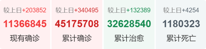 | 国家/地区 | 确诊总数 | 新增确诊 | 死亡总数 |