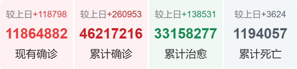 | 国家/地区 | 确诊总数 | 新增确诊 | 死亡总数 |