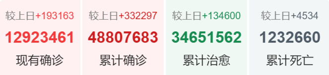 | 美国 | 9,919,522 | 118,204 | 240,953 |