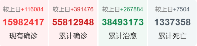 | 美国 | 11,695,711 | 157,261 | 254,255 |