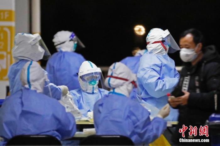 11月22日晚,上海浦东国际机场组织所有相关人员进行集体核酸检测。中新社记者 殷立勤 摄