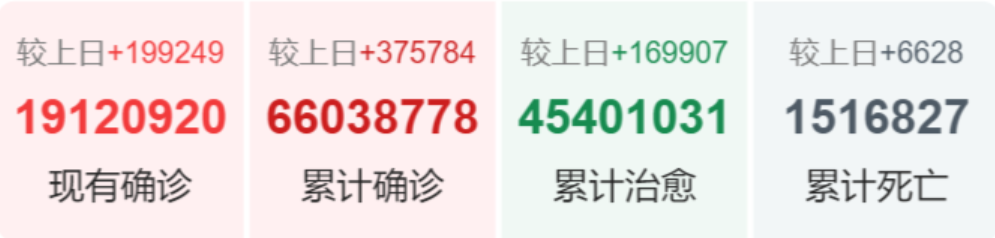 | 美国 | 14,537,263 | 220,643 | 282,833 |