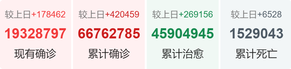 | 美国 | 14,983,425 | 208,790 | 287,825 |